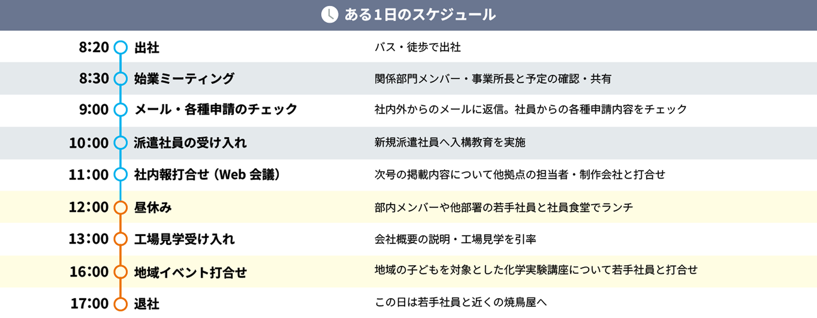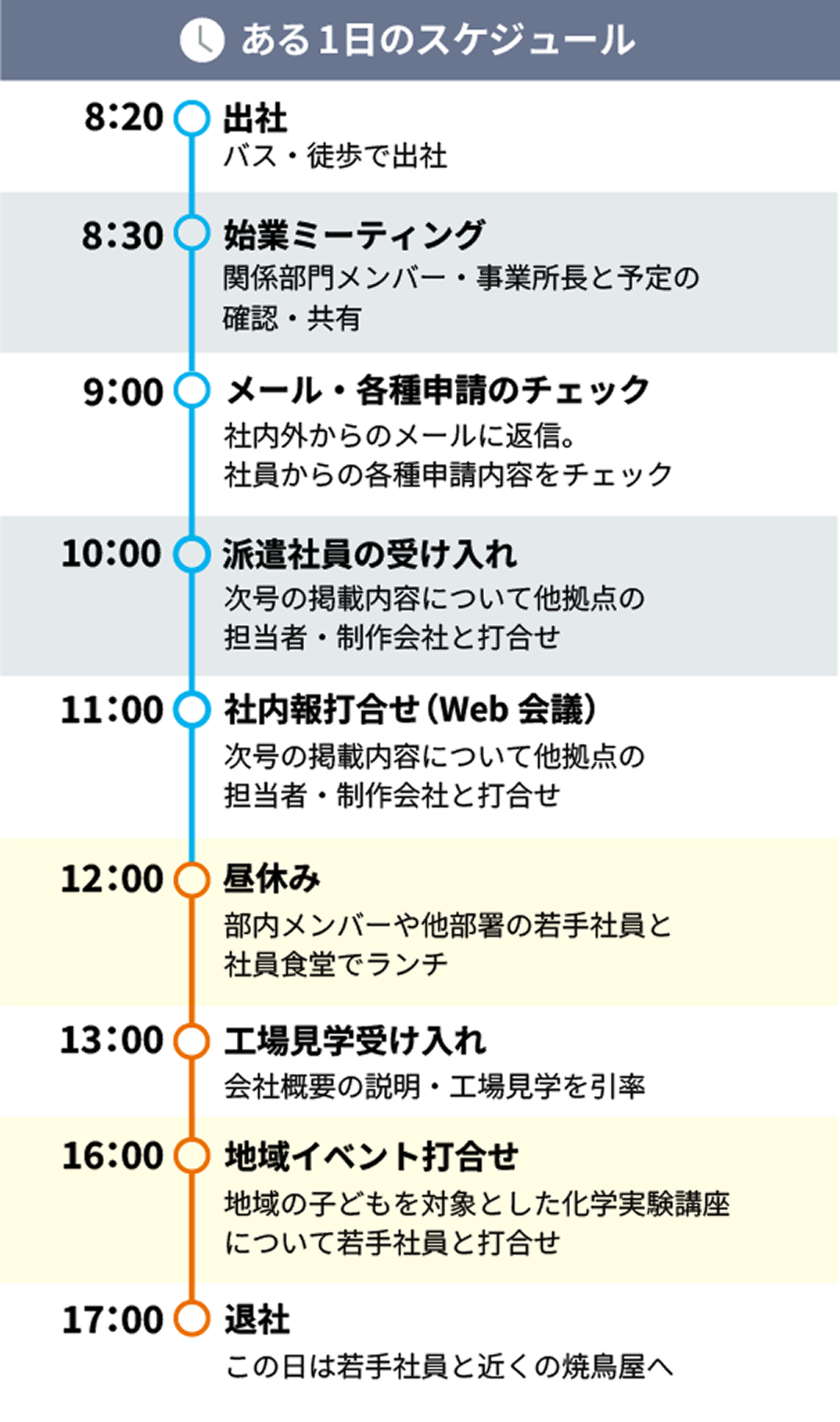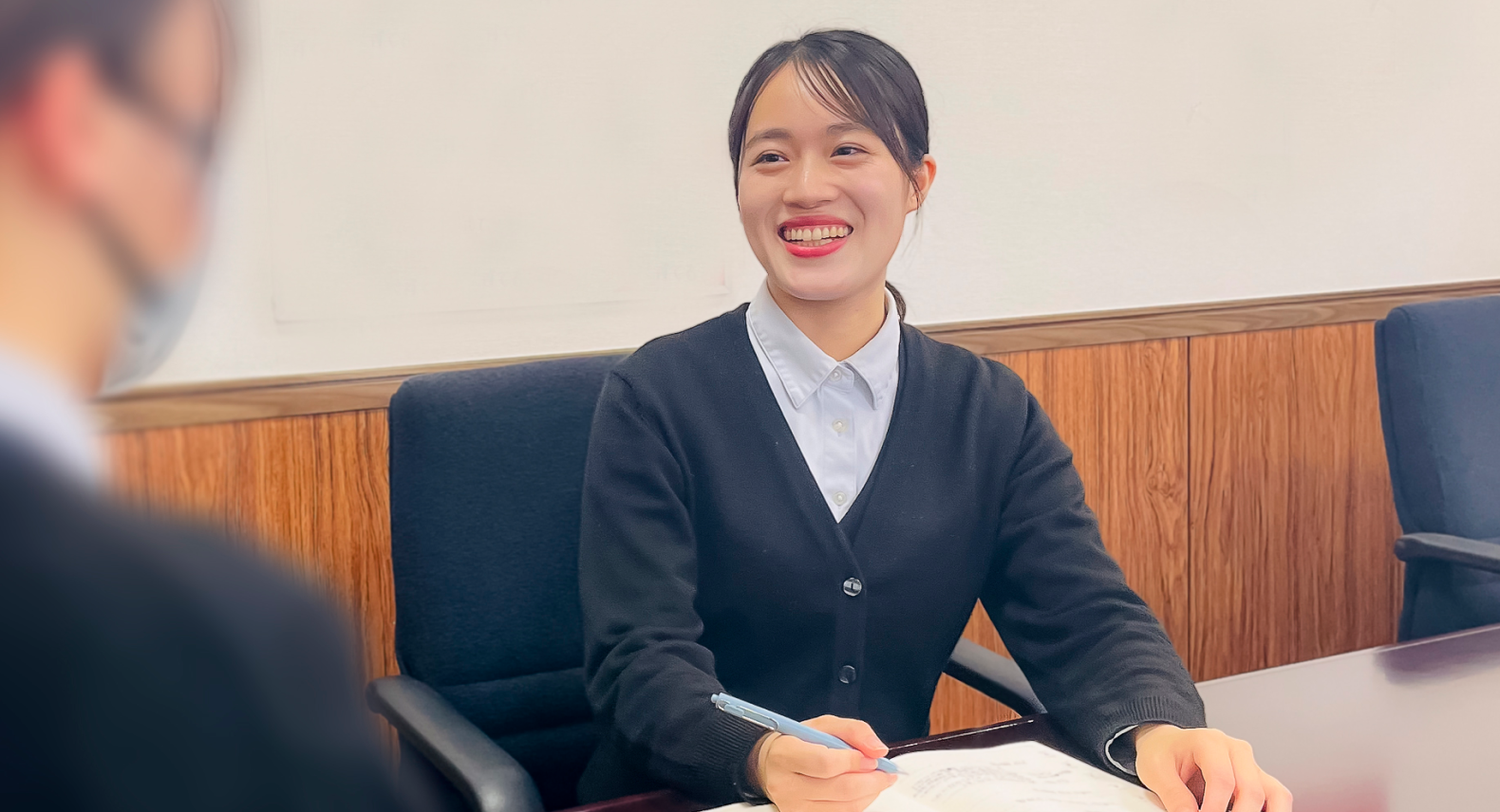 社内外からの問い合わせは多いですが、相手の質問の意図や背景を読み取り、適切な回答をして悩みや困りごとを解決することにやりがいを感じます。社内では「話しかけやすい」と言われることが多く、それが自分の強みだと思います。これからは、会社と地域、会社と学生、社員と社員――その間の"架け橋"のような存在になることを目指しています。