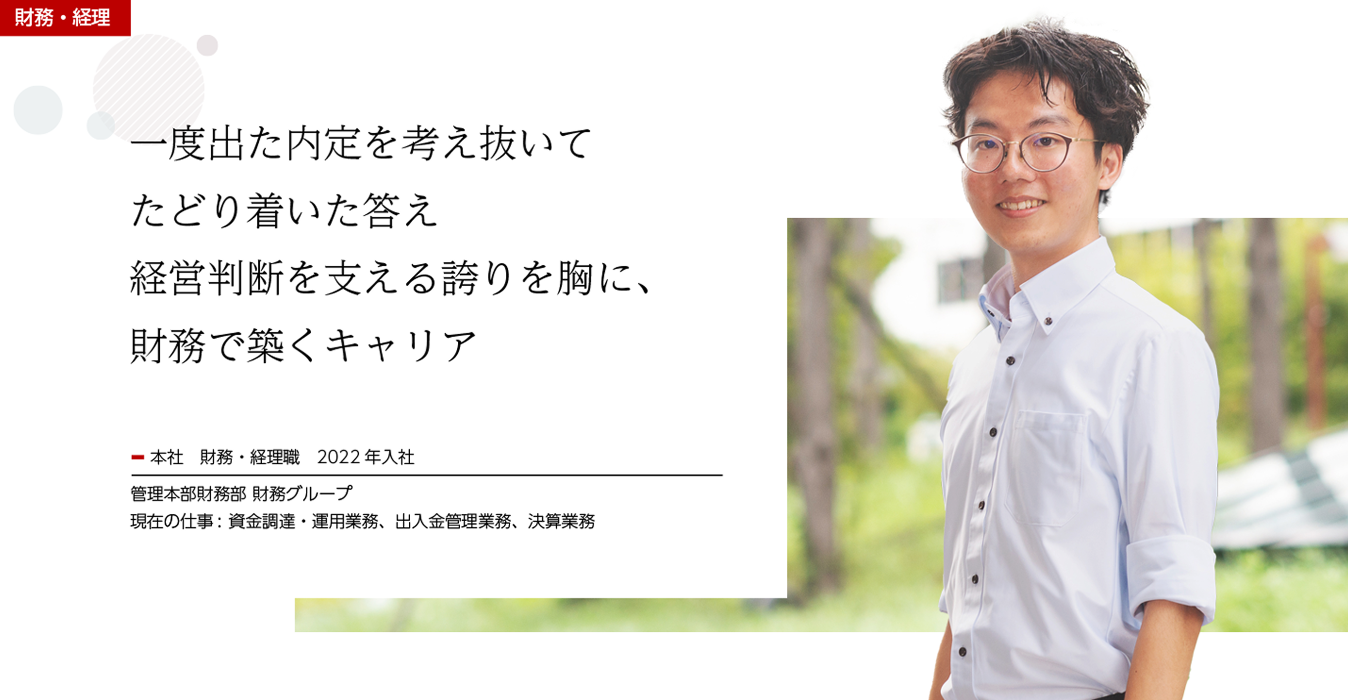 意外と思われるかもしれませんが、財務の仕事は数字を見るだけでなく、多くの人とかかわります。私は社内外の人と広く良好な関係を築くことが得意だと自負しており、経費精算や監査対応などでも躊躇なく軽やかにやりとりができます。現在の目標は、さらに専門性を深め、財務として経営判断に資する数字を意図をもって提示できる存在になることです。数字の見え方一つで会社のとらえ方が変わるからこそ、責任を持って数字を示し、経営に貢献できる財務の専門家として挑戦を続けていきたいです。