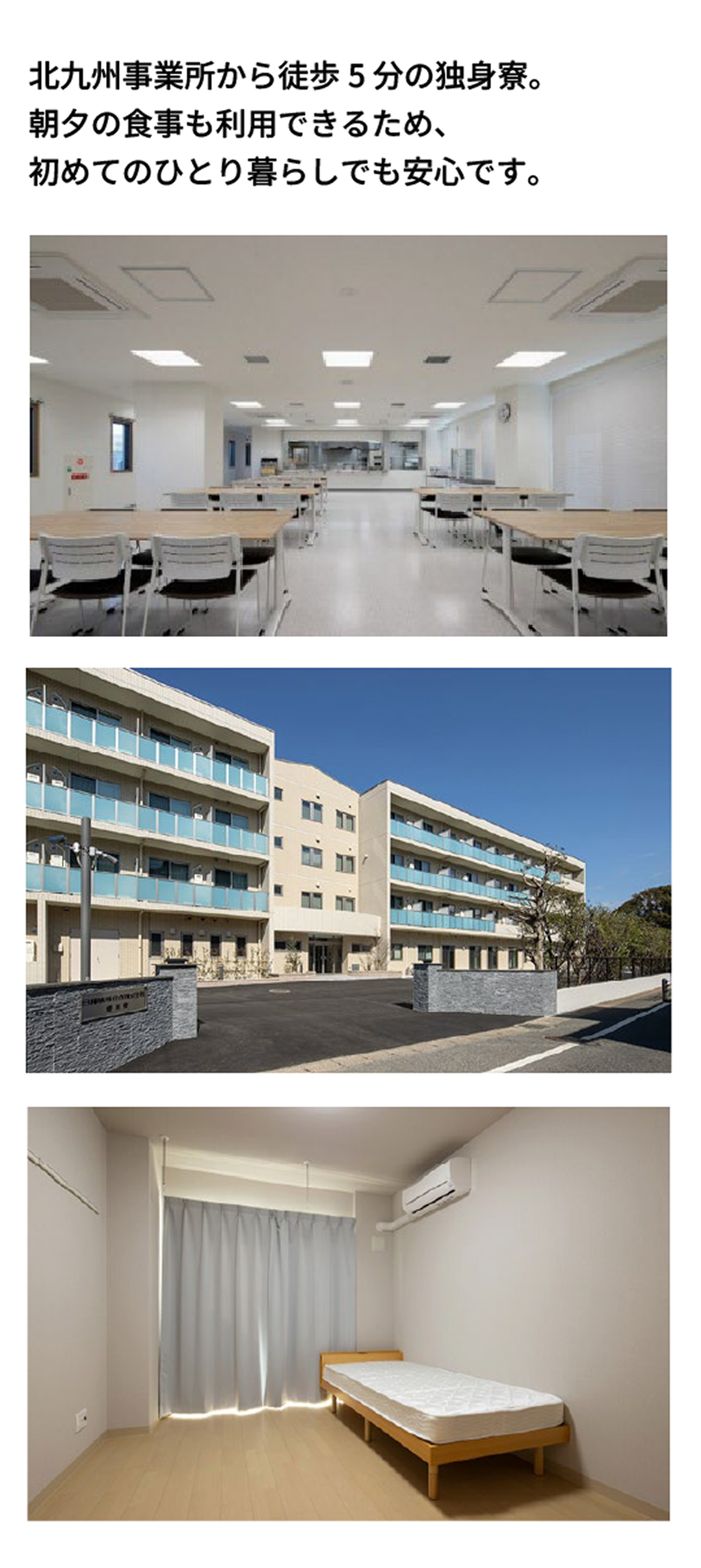 独身寮や借上げ社宅制度をはじめ、社員が安心して長く働ける制度を整えています。