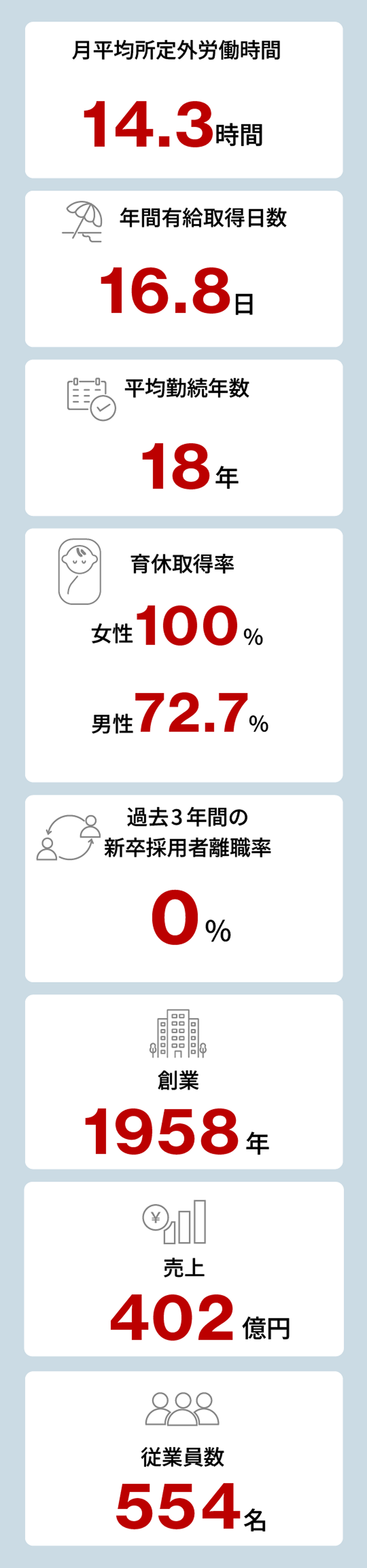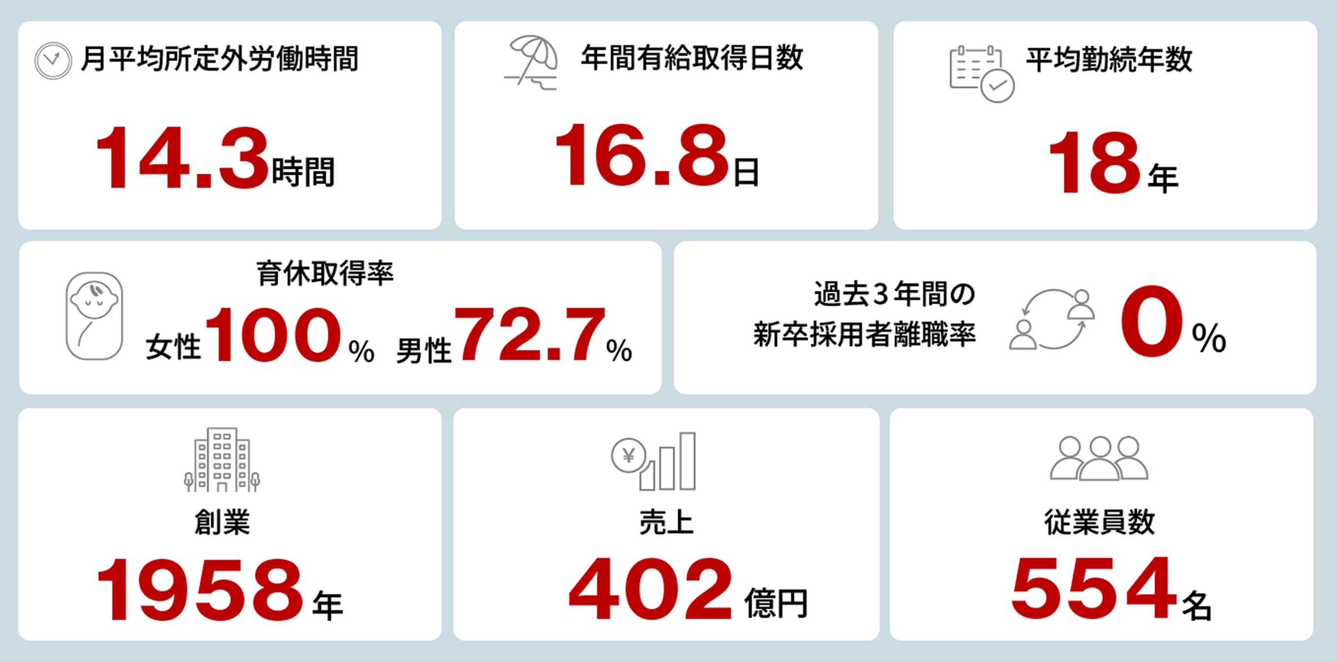 安定した経営基盤と、人を大切にする文化が、数字にも現れています。(2024 年)