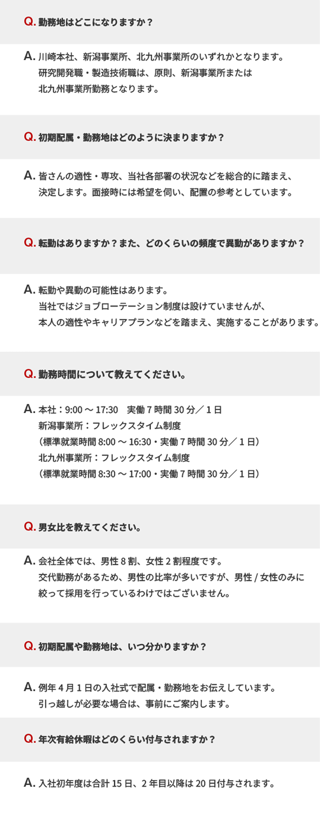 川崎本社、北九州事業所、新潟事業所。それぞれの地域が、技術と人の成長を支える舞台です。