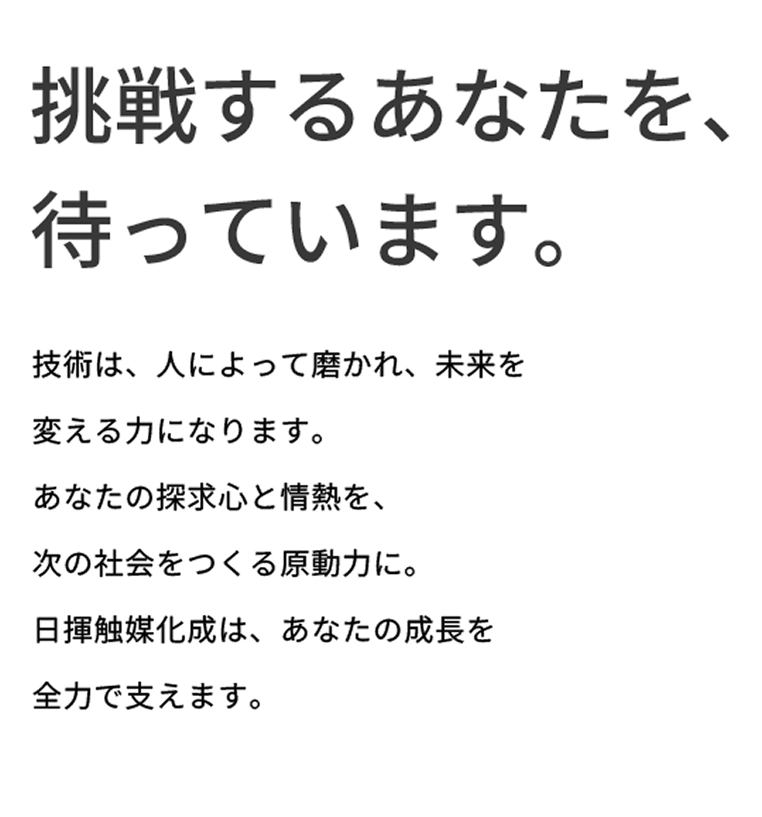 技術職・コーポレート職を問わず、挑戦する姿勢を後押しします。